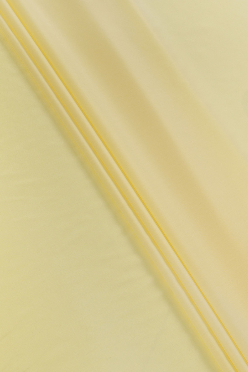 Włoska tkanina bawełniana typu batyst w kolorze jasnym żółtym. Tkanina cienka, lekko transparentna, elastyczna z delikatnym połyskiem.