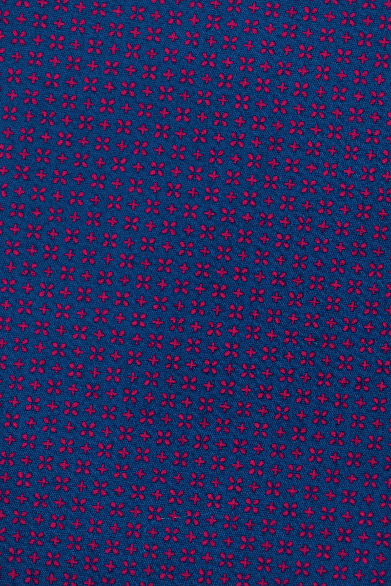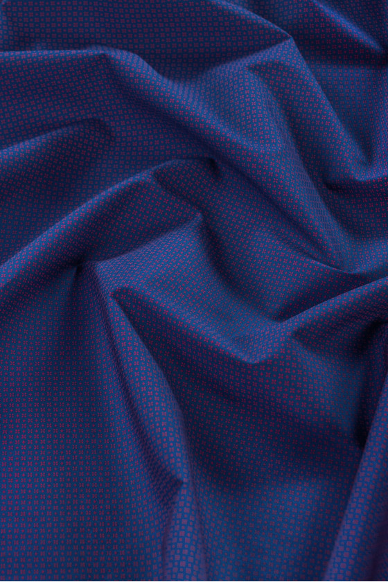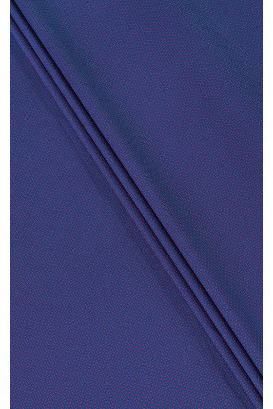 Włoska bawełna koszulowa w kolorze granatowym z bardzo drobnym, czerwonym wzorkiem. Bawełna to w 100% naturalne włókno. Tkaniny bawełniane są wytrzymałe, nie niszczą się szybko, na długo zachowują swoje właściwości, doskonale przepuszczają powietrze, oddychają, co daje wysoki komfort użytkowania. Tkanina nieelastyczna, matowa, cienka ale kryjąca - idealna do uszycia koszuli, bluzki lub sukienki.