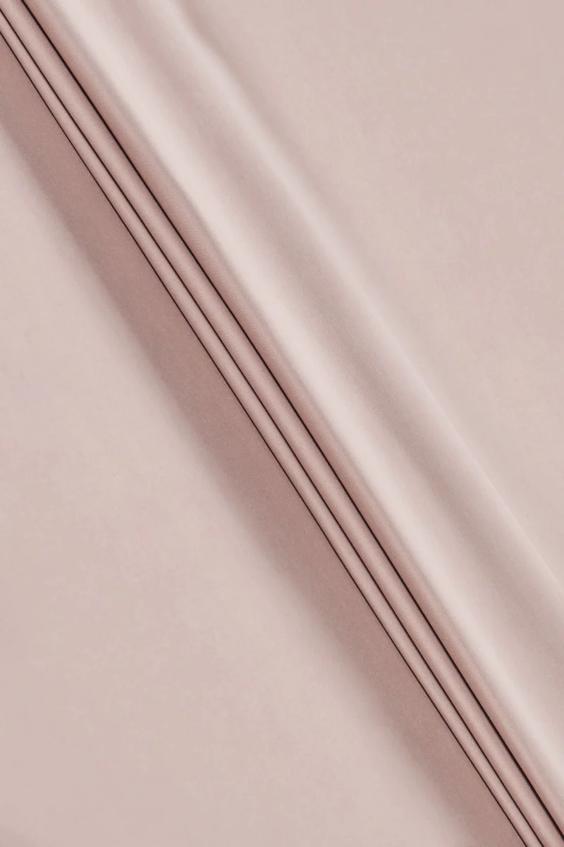 Włoska tkanina bawełniana z dodatkiem wiskozy oraz elastanu w kolorze jasnego, brudnego różu. Tkanina lekko sztywna, z jednej strony o delikatnie satynowym splocie. Bardzo dobrze się rozciąga, dlatego idealnie sprawdzi się do uszycia dopasowanej sukienki, spódnicy lub szortów. Naturalny skład sprawia, że jest to świetna tkanina na wiosnę i lato.