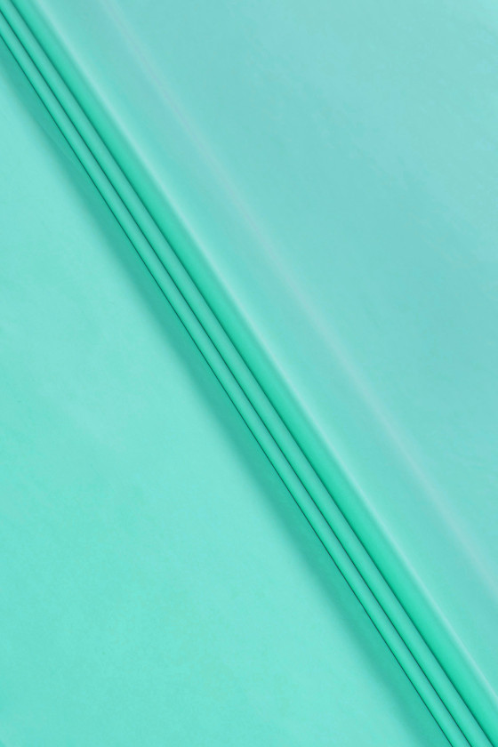 Włoska tkanina bawełniana z dodatkiem elastanu w kolorze jasnego turkusu. Tkanina elastyczna o średniej grubości i gładkim, lekko błyszczącym splocie z przeznaczeniem do uszycia sukienki, spódnicy lub spodni. Naturalna tkanina w bardzo dobrym gatunku, dodatek elastanu sprawia, że jest wygodniejsza w użytkowaniu i mniej się gniecie. Tkanina niezastąpiona w okresie wiosenno-letnim.