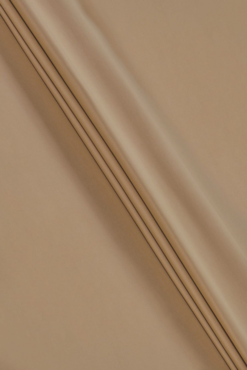Włoska tkanina koszulowa utkana w 100% z bawełny w kolorze toffi. Tkanina jest cienka, ale kryjąca, nieelastyczna, delikatnie satynowana oraz układa się lekko sztywno. Polecamy na koszule, bluzki, letnie sukienki.
