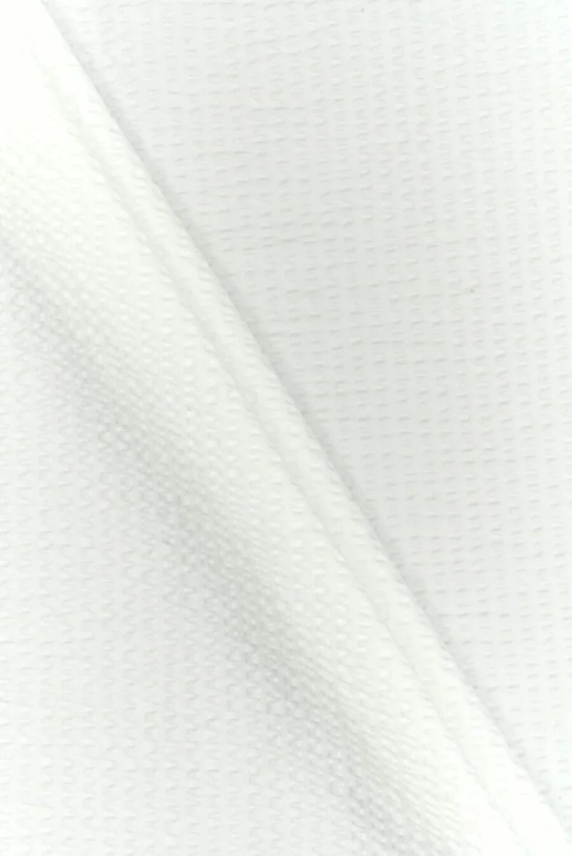 Włoska tkanina bawełniana z delikatną, wyduszaną strukturą dostępna w dwóch kolorach - śmietanowym i melanżowym, ciemnym granacie. Tkanina jest średniej grubości, miękka, elastyczna, kryjąca, a dodatek poliestru sprawia, że będzie trwalsza. Polecamy na sukienki, spódnicę a także bluzki, szorty.