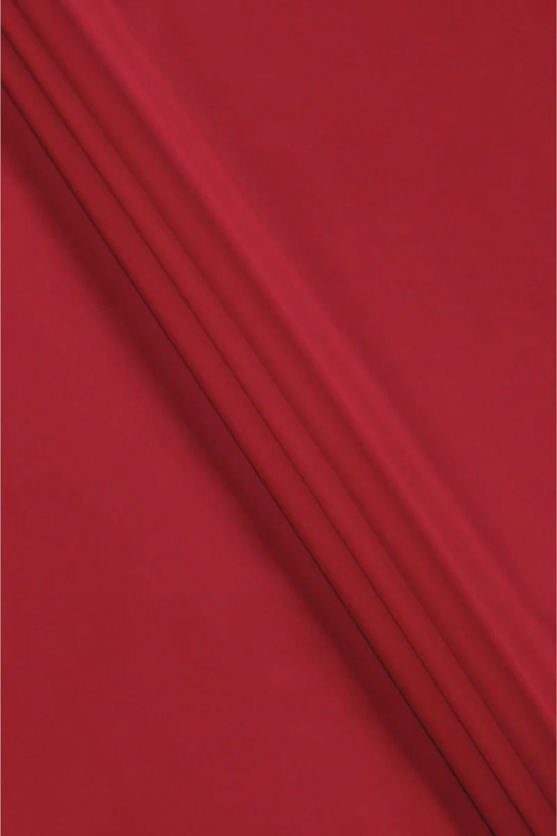Włoska tkanina bawełniana z dodatkiem elastanu w kolorze ciemnej czerwieni. Tkanina elastyczna o średniej grubości i gładkim, matowym splocie z przeznaczeniem do uszycia sukienki, spódnicy lub spodni. Naturalna tkanina w bardzo dobrym gatunku, dodatek elastanu sprawia, że jest wygodniejsza w użytkowaniu i mniej się gniecie. Tkanina niezastąpiona w okresie wiosenno-letnim.