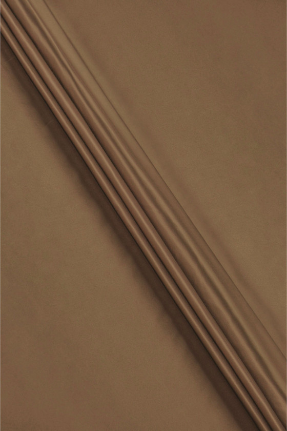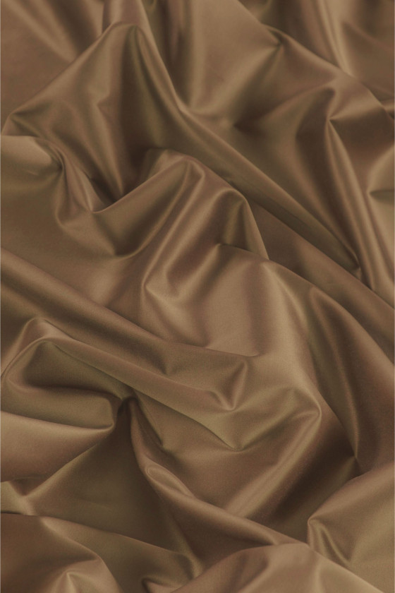 Włoska tkanina bawełniana z dodatkiem poliestru oraz elastanu w kolorze oliwkowego beżu. Tkanina elastyczna o średniej grubości i gładkim, satynowym splocie z przeznaczeniem do uszycia sukienki, spódnicy lub spodni. Naturalna tkanina w bardzo dobrym gatunku, dodatek poliestru i elastanu sprawia, że jest wygodniejsza w użytkowaniu i mniej się gniecie. Tkanina niezastąpiona w okresie wiosenno-letnim.