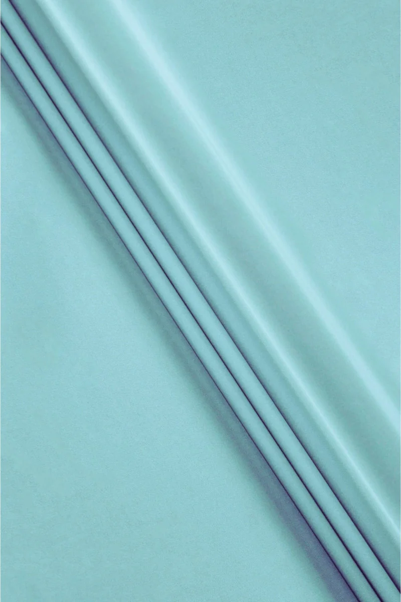 Włoska tkanina bawełniana z dodatkiem elastanu w kolorze niebieskiego turkusu. Tkanina elastyczna o średniej grubości i gładkim splocie z przeznaczeniem do uszycia sukienki, spódnicy lub spodni. Naturalna tkanina w bardzo dobrym gatunku, dodatek elastanu sprawia, że jest wygodniejsza w użytkowaniu i mniej się gniecie. Tkanina niezastąpiona w okresie wiosenno-letnim.