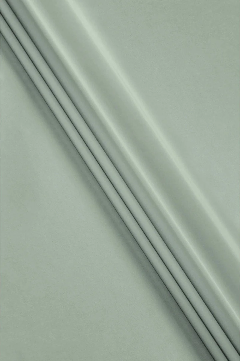 Włoska tkanina bawełniana z dodatkiem elastanu w kolorze szarej oliwki. Tkanina elastyczna o średniej grubości i gładkim, delikatnie błyszczącym splocie z przeznaczeniem do uszycia sukienki, spódnicy lub spodni. Naturalna tkanina w bardzo dobrym gatunku, dodatek elastanu sprawia, że jest wygodniejsza w użytkowaniu i mniej się gniecie. Tkanina niezastąpiona w okresie wiosenno-letnim.