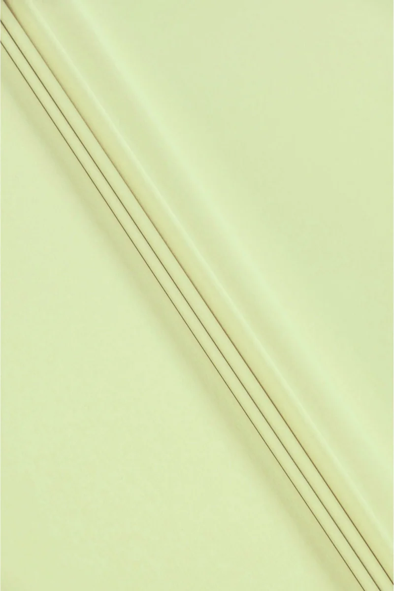 Włoska tkanina bawełniana z dodatkiem elastanu w kolorze jasnej zgaszonej limonki. Tkanina elastyczna o średniej grubości i matowym splocie z przeznaczeniem do uszycia sukienki, spódnicy lub spodni. Naturalna tkanina w bardzo dobrym gatunku, dodatek elastanu sprawia, że jest wygodniejsza w użytkowaniu i mniej się gniecie. Tkanina niezastąpiona w okresie wiosenno-letnim.