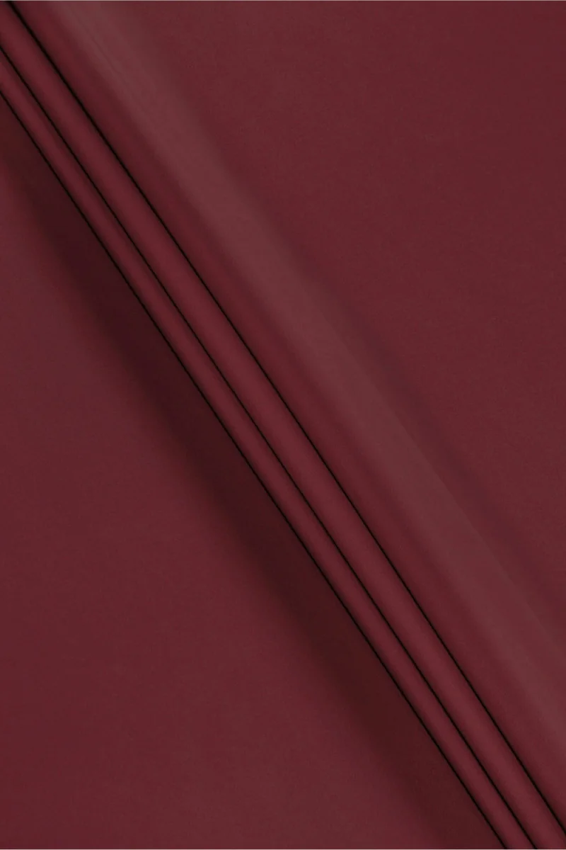 Włoska bawełna koszulowa, elastyczna w kolorze bordowym. Tkanina cienka ale kryjąca o gładkim splocie z przeznaczeniem do uszycia koszuli, bluzki lub sukienki. Naturalna tkanina w bardzo dobrym gatunku, a dodatek elastanu sprawia, że jest wygodniejsza w użytkowaniu i mniej się gniecie.