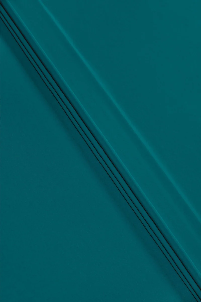 Włoska tkanina typu cadi o splocie żorżetowym w kolorze morskim niebieskim. Tkanina jest nieelastyczna, ciężka i lejąca. Idealna do uszycia sukienki, spódnicy lub spodni.