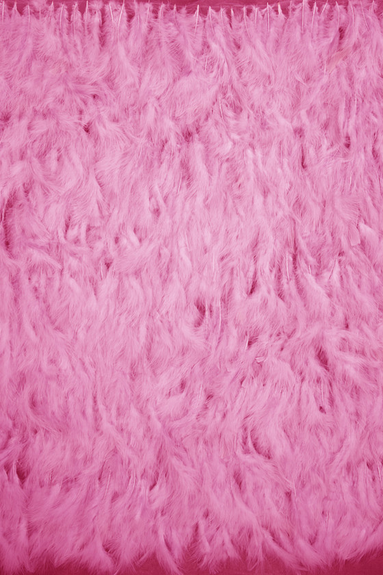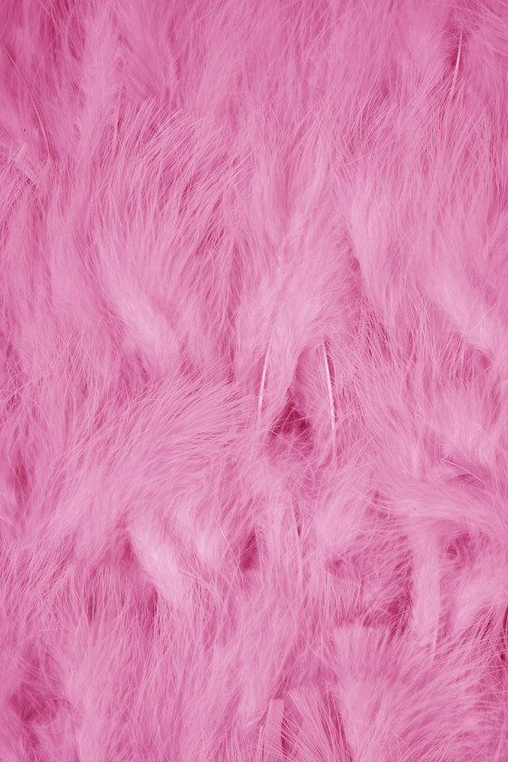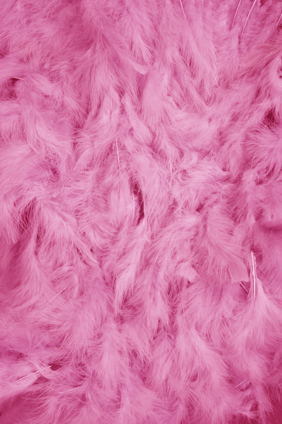 Zjawiskowa tkanina wieczorowa w kolorze ciemnego różu/fuksji - siatka gęsto obszyta kogucimi piórami o długości ok 15 cm - szyjemy ją obwodowo. Tkanina lekko transparentna o szerokości 115 cm, pióra są miękkie i puszyste.