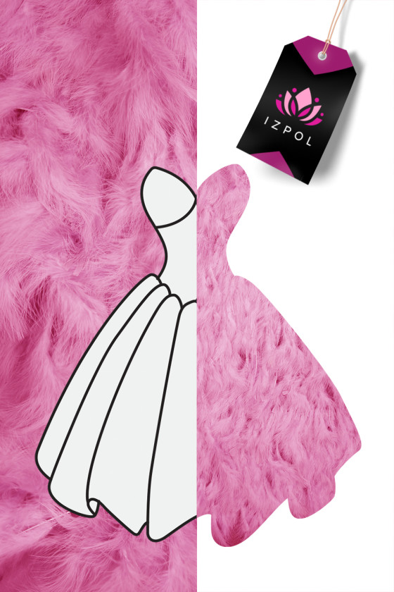 Zjawiskowa tkanina wieczorowa w kolorze ciemnego różu/fuksji - siatka gęsto obszyta kogucimi piórami o długości ok 15 cm - szyjemy ją obwodowo. Tkanina lekko transparentna o szerokości 115 cm, pióra są miękkie i puszyste - przepiękna propozycja do uszycia sukni wieczorowej, bluzki, spódnicy lub na wykończenia innych tkanin.