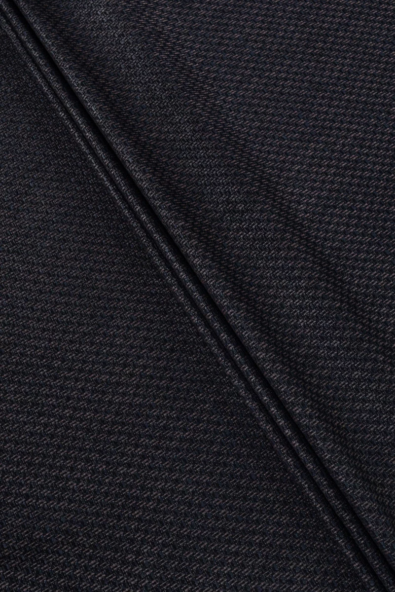 Włoska tkanina kostiumowa typu chanel w kolorze czarnym z wplecionymi tasiemkami w kolorze brązowym oraz czarnym. Tkanina typu chanel to tkanina bardzo elegancka, miękka i mięsista, znana z oryginalnego splotu.