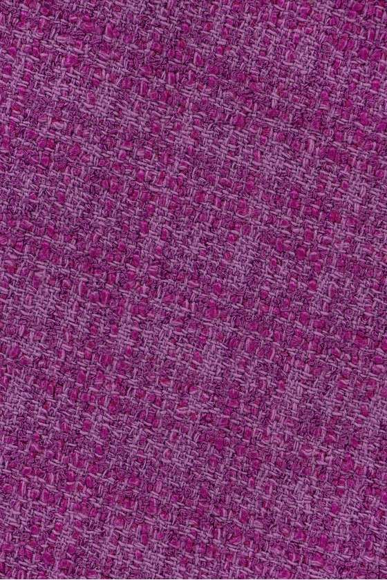 Włoska tkanina kostiumowa typu chanel w kolorze fioletowym. Tkanina typu chanel to tkanina bardzo elegancka, miękka i mięsista, znana z oryginalnego splotu. Idealna do uszycia kostiumu, marynarki, żakietu, spódnicy lub cienkiego płaszcza.