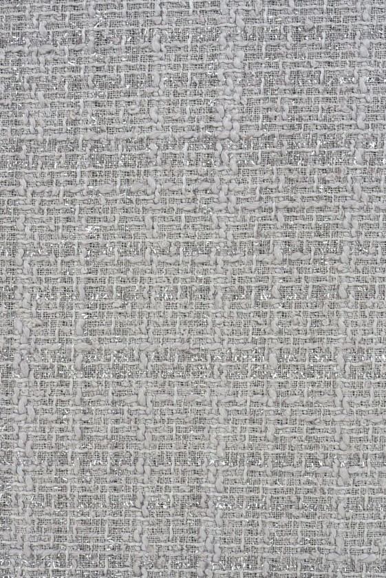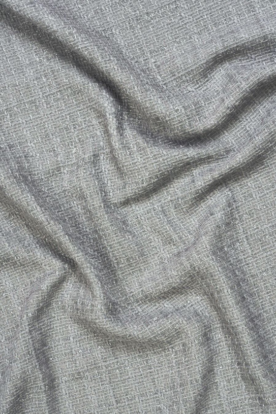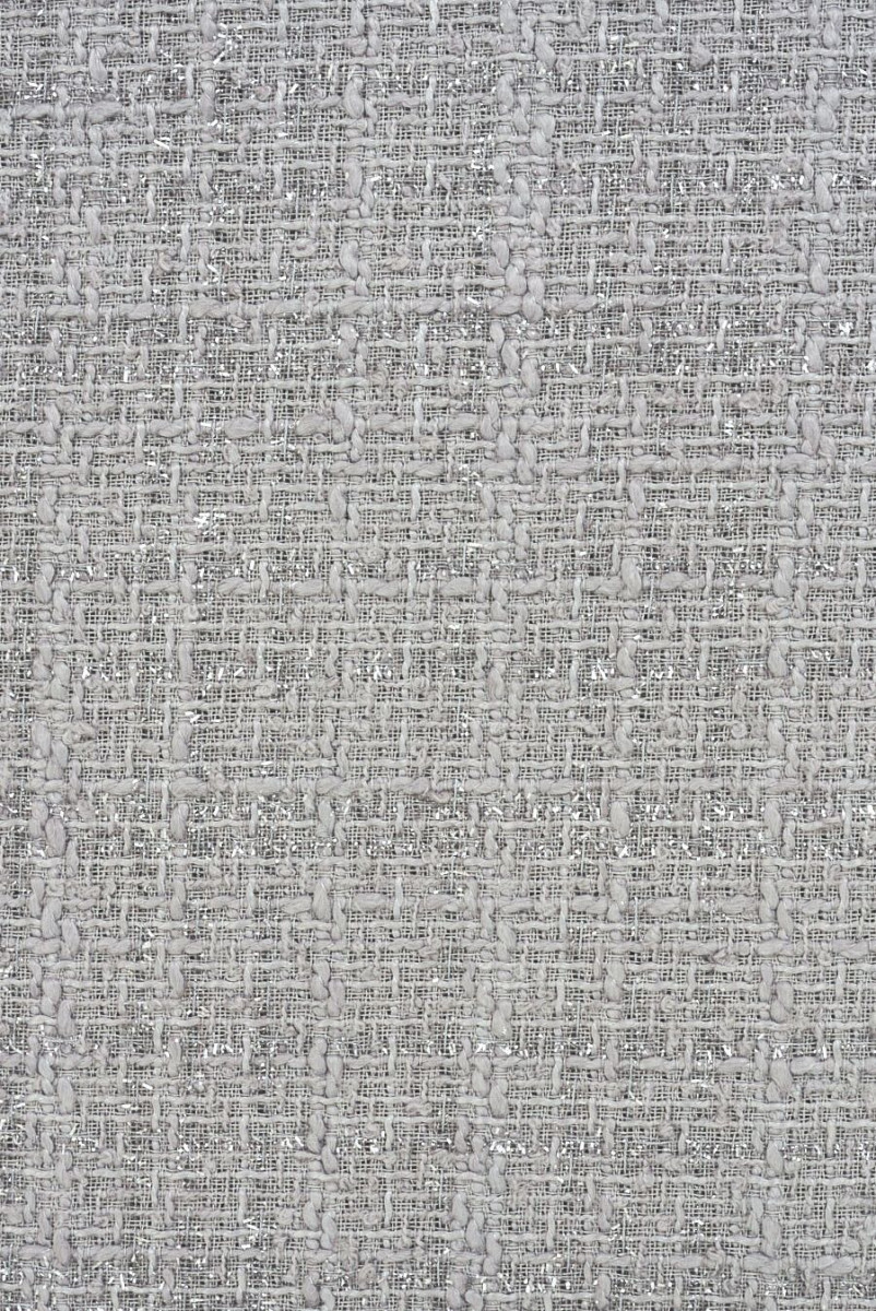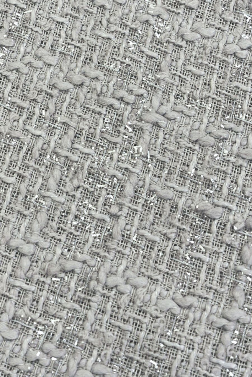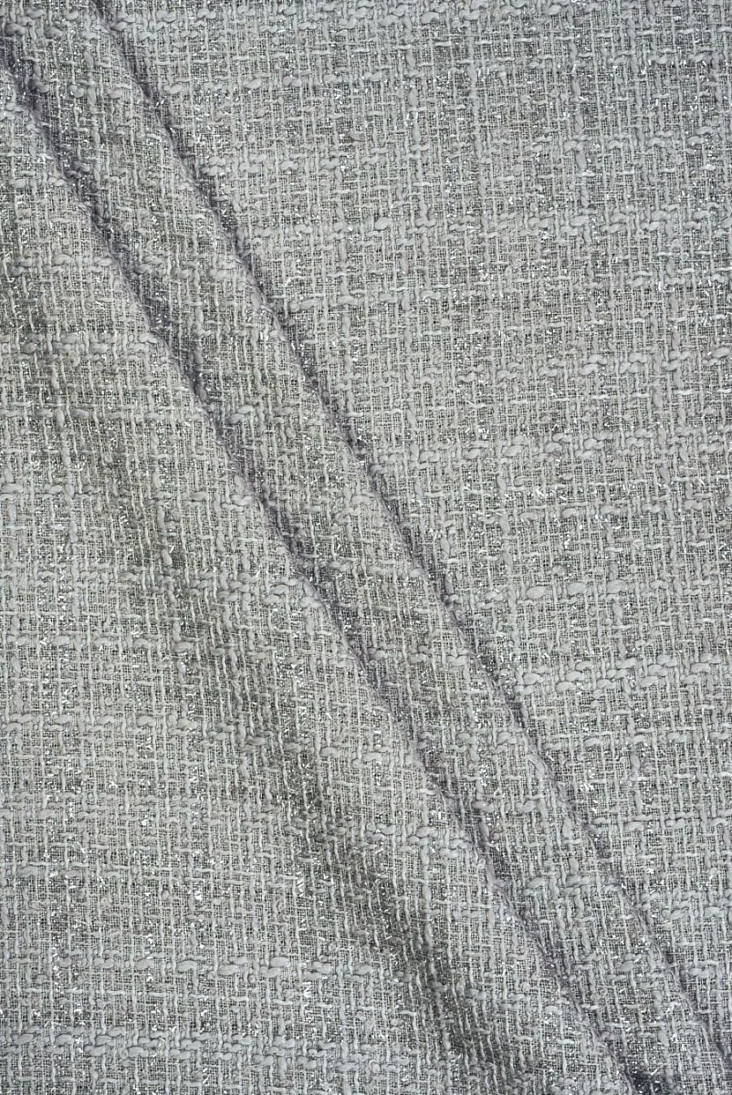 Włoska tkanina kostiumowa typu chanel w kolorze szarym z wplecioną nitką lureksową.