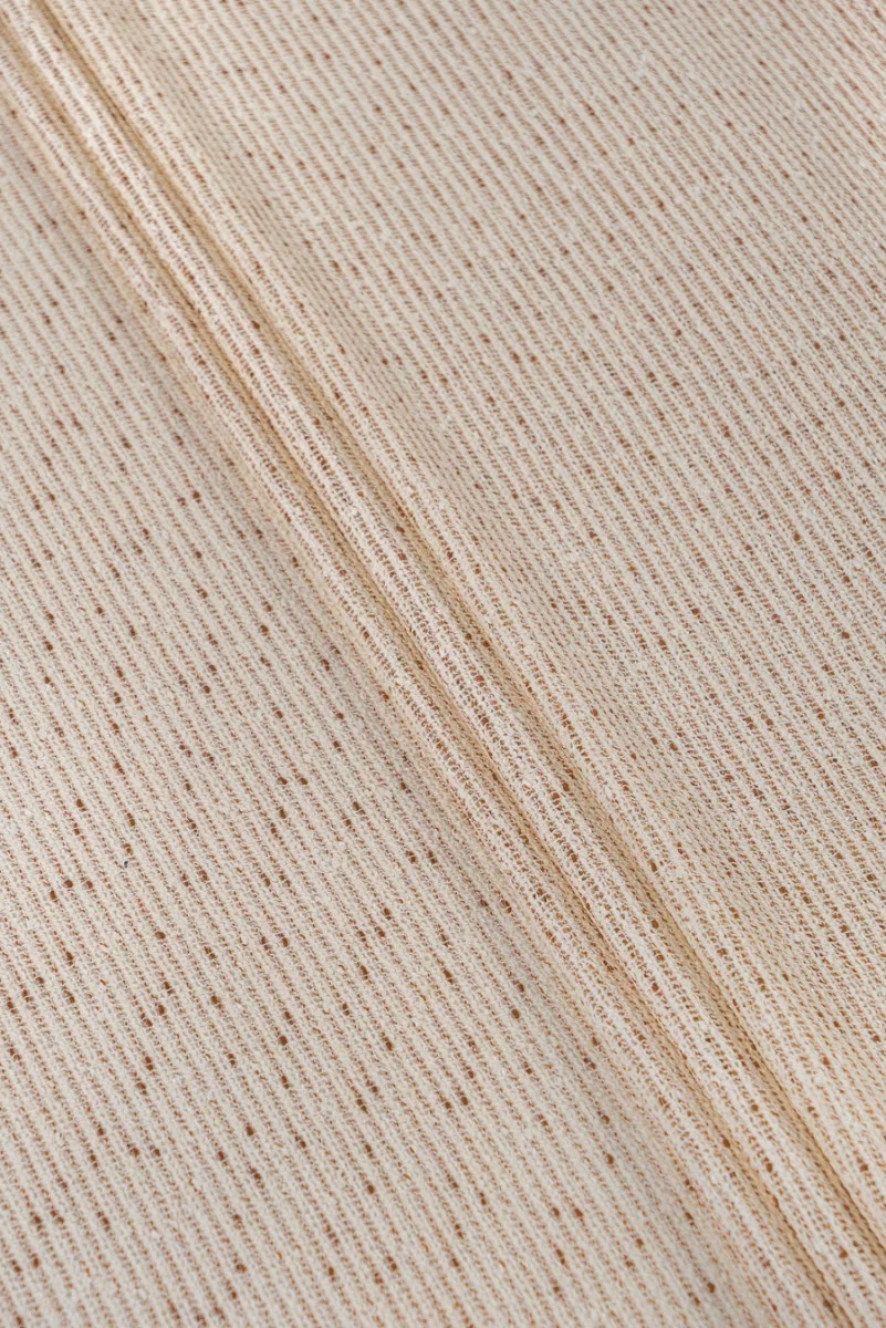 Tkanina kostiumowa typu chanel o luźnym splocie z przeznaczeniem na przejściowe sukienki, melanż beżu z brązem.