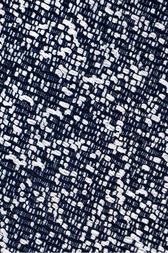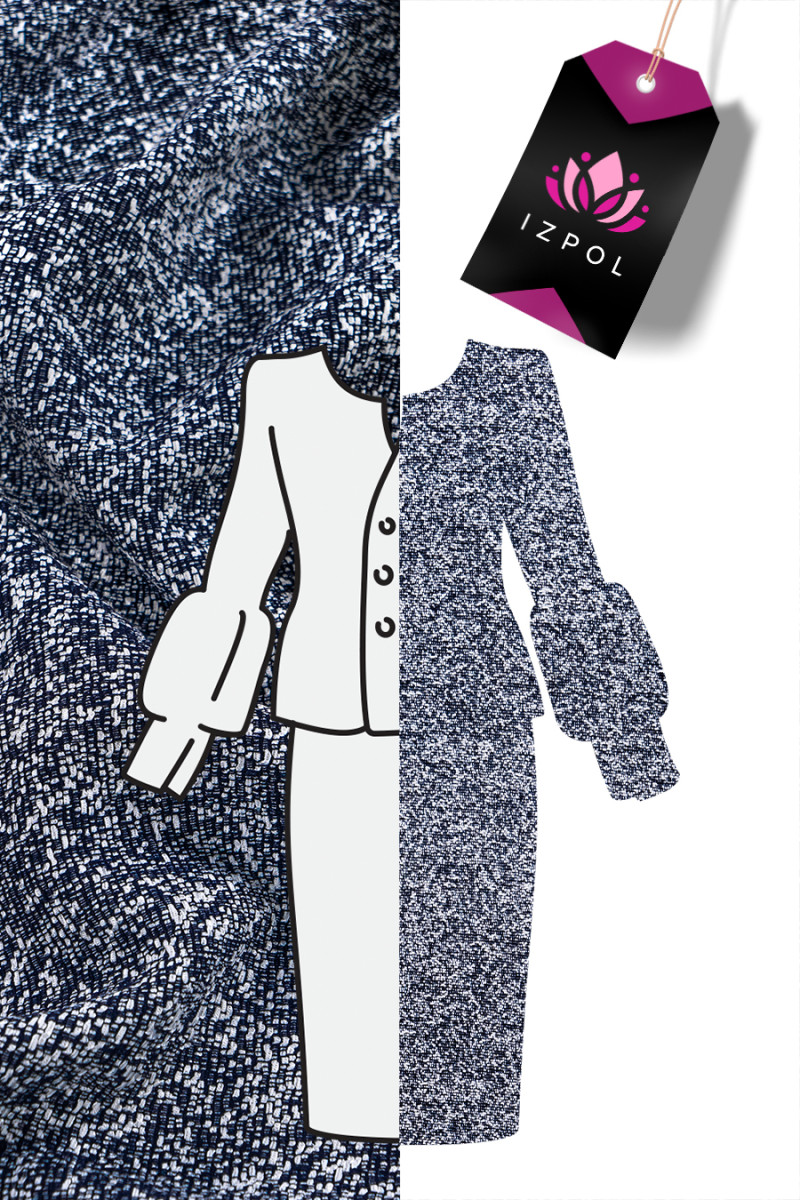 Włoska tkanina kostiumowa typu chanel w kolorze biało-granatowym. Tkanina typu chanel to tkanina bardzo elegancka, miękka i mięsista, znana z oryginalnego splotu. Idealna do uszycia kostiumu, marynarki, żakietu, spódnicy lub cienkiego płaszcza.