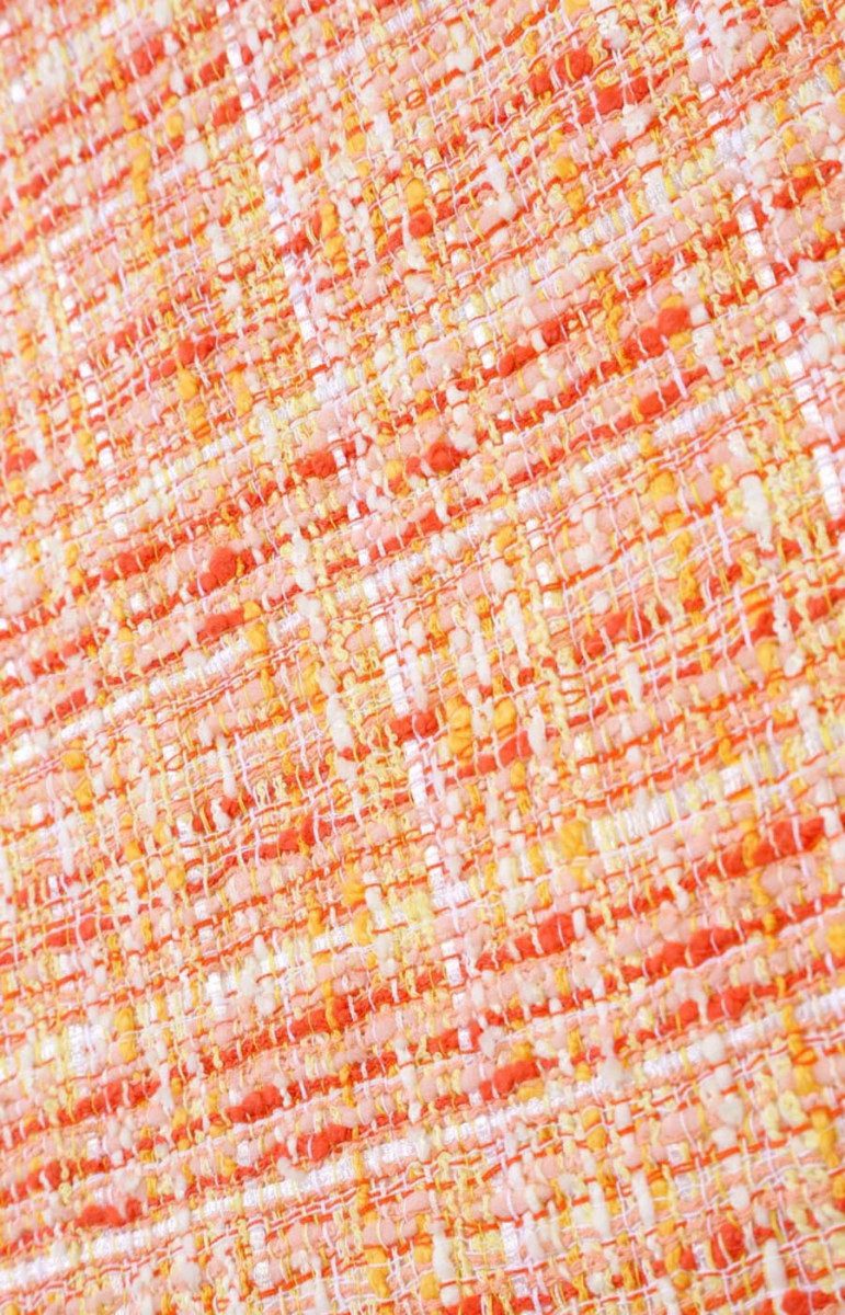 Piękna klasyczna tkanina kostiumowa typu chanel. Idealna na komplety: żakiet oraz spódniczka. Można również zastosować ją na cienkie płaszczyki.