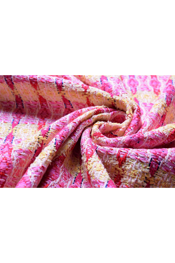 Ekskluzywna tkanina kostiumowa typu chanel w oryginalnej odsłonie. Tkanina jest bardzo przyjemna w dotyku, układa się miękko, utkana w większości z naturalnych włókien.