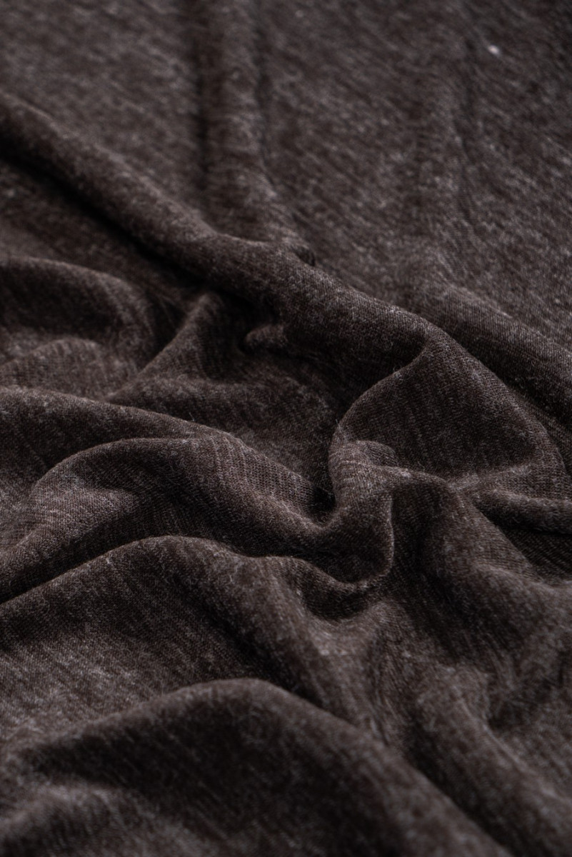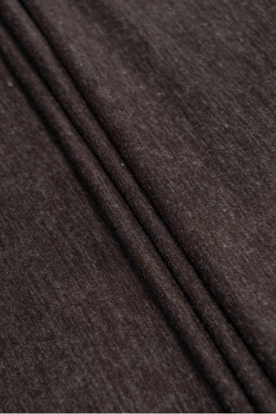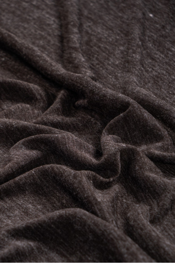 Włoska dzianina swetrowa w kolorze szaro-brązowym - melanż, utkana z wełny naturalnej z domieszką akrylu. Cienka, transparentna, przyjemna w dotyku, idealna na uszycie sweterka, bluzki.