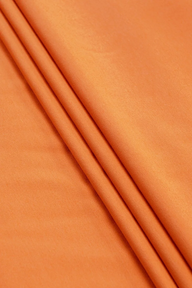 Dzianina zwarta, elastyczna typu jersey w kolorze pomarańczowym. W składzie : 70% wiskozy, 24% poliestru, 6% elastanu