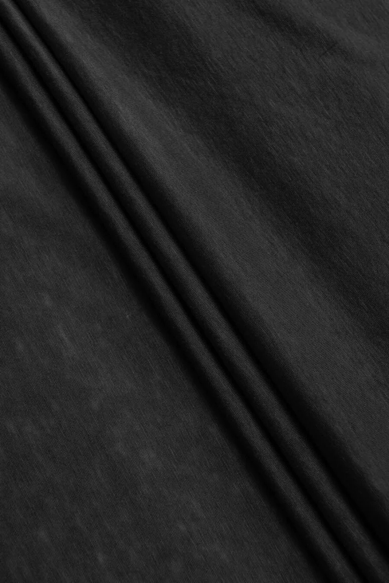 Cienka dzianina bawełniano-kaszmirowa w kolorze czarnym. Dzianina składa się z : bawełny 85% i kaszmiru 15 %. Gramatura 140 g/ m2. Polecamy do uszycia bluzeczek, T-shirtów, sukienek .