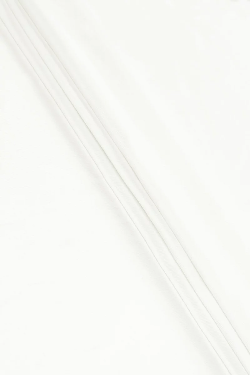 Włoska dzianina bawełniana typu ścigacz w kolorze śmietanowym - występuje w rękawie o szerokości 50 cm. Tkanina o charakterystycznym, prążkowanym splocie - idealna do wykończenia bluz lub spodni dresowych.