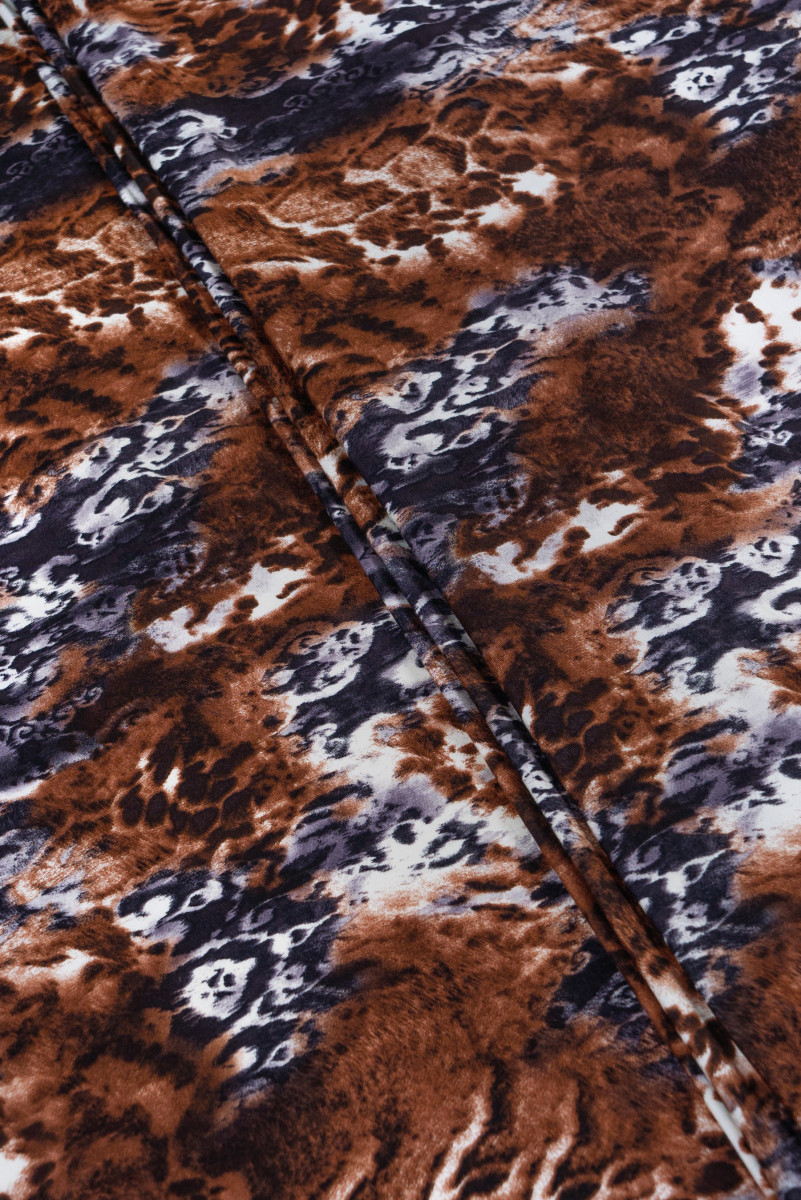 Włoska dzianina wiskozowa w brązowo-szary wzór skóry węża. Dzianina wiskozowa to tkanina naturalna (pozyskiwana z celulozy), bardzo miękka, przewiewna. Tkanina idealna do uszycia letniej sukienki, bluzki lub spódnicy.
