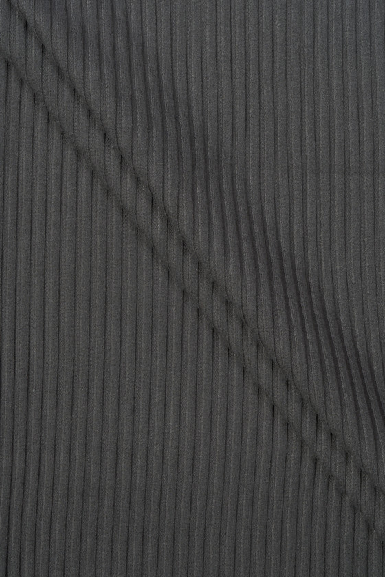 Włoska dzianina o szerokim splocie ściągaczowym (0,5 cm) w kolorze szarym. Dzianina miękka, bardzo elastyczna, kryjąca, przyjemna w dotyku - idealna do uszycia sukienki, spódnicy, bluzeczki.