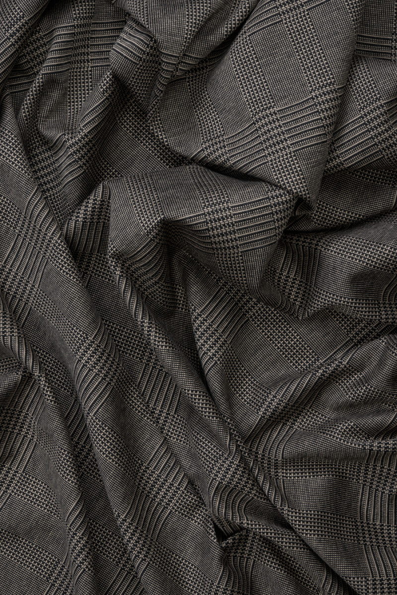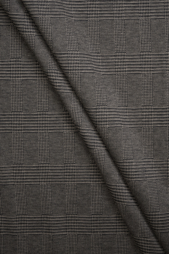 Włoska dzianina typu jersey z motywem czarno-brązowej kratki o wymiarach 4 cm * 9 cm. Tkanina typu jersey to dzianina kryjąca, miękko układająca się, elastyczna, którą można uszyć bez podszewki. Idealna propozycja w klasycznym wzornictwie do stworzenia sukienki, spódnicy, spodni oraz marynarki.