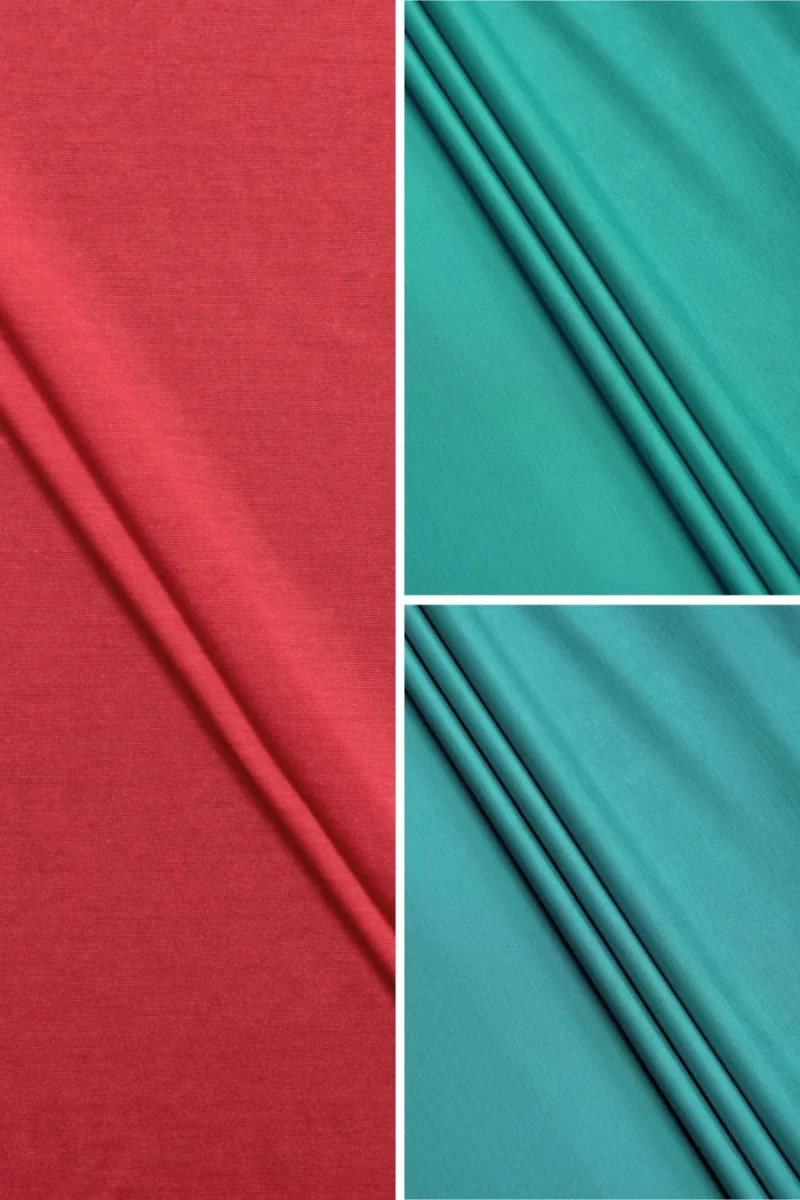 Włoska dzianina utkana w 100% z mikromodalu w trzech kolorach. Dzianina jest średniej grubości, miękka, przyjemna w chwycie, elastyczna oraz posiada bardzo delikatny połysk. Polecamy na bluzki, topy, koszulki a także legginsy.