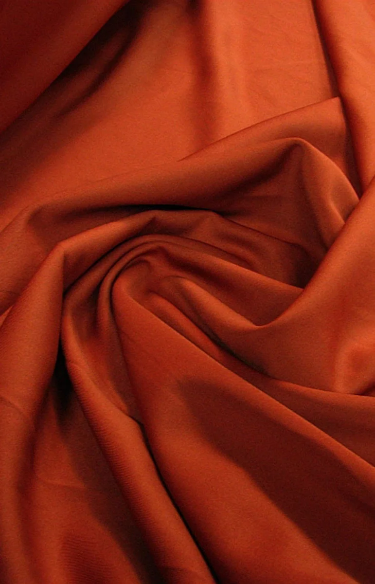 Pianka-scuba to elastyczna, miękka tkanina przeznaczona do uszycia ubrań. Kolor pomarańczowej cegły.