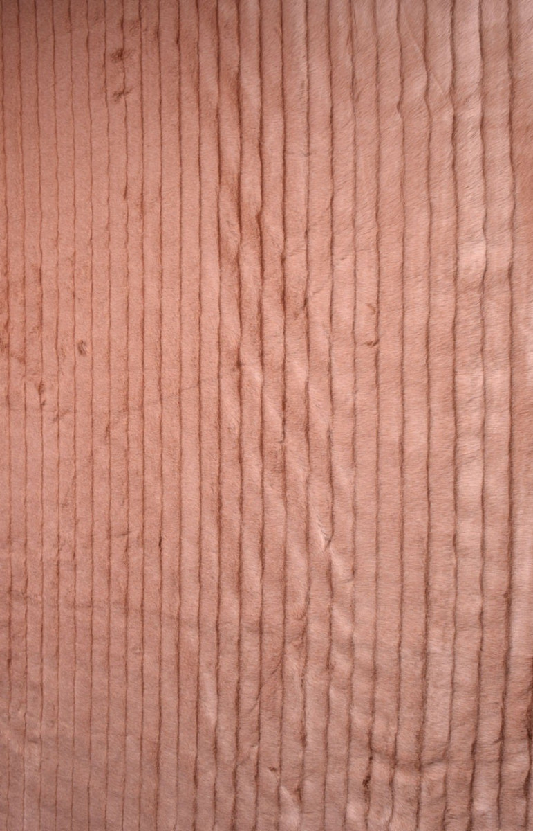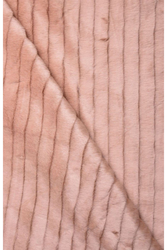 Grube sztuczne futro w kolorze pudrowego różu z przeznaczeniem na płaszcze lub kurtki ,eleganckie etole lub wykończenia odzieży wierzchniej. Włosek długości ok 1 cm. Paski szerokie na ok 2 cm.