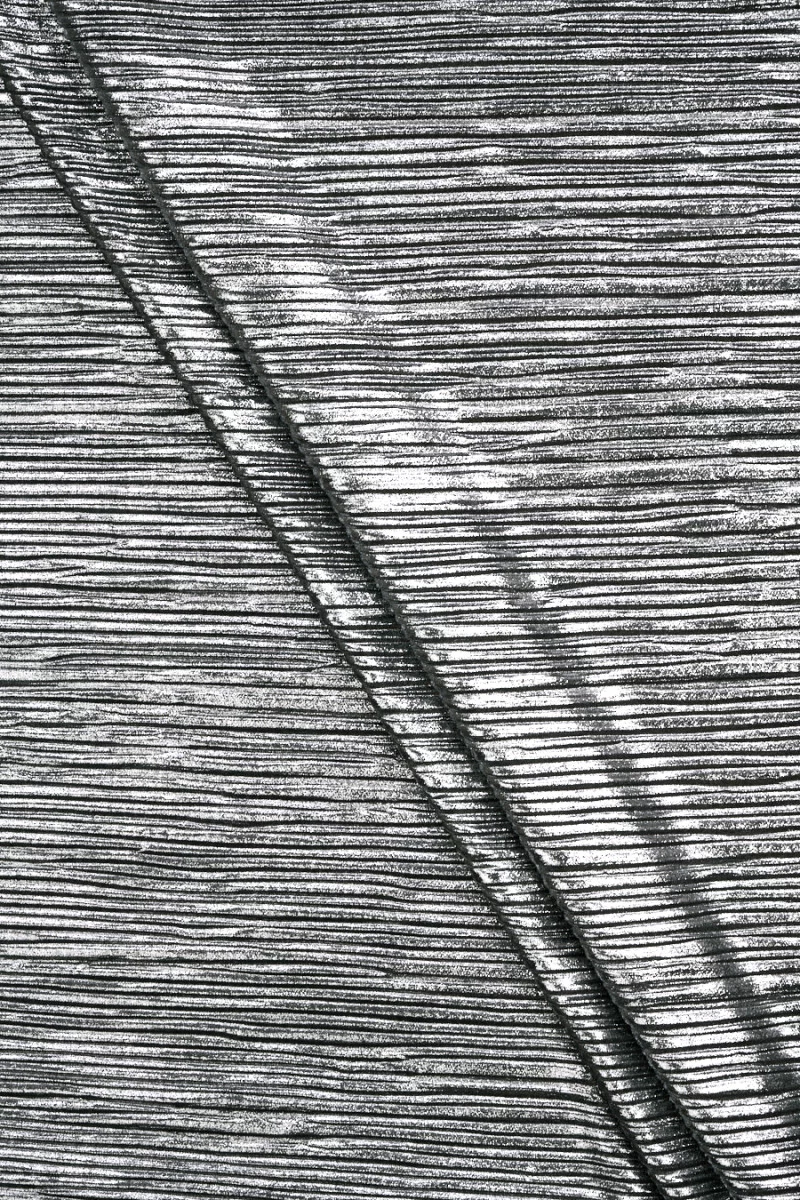 Efektowna, błyszcząca tkanina drobno plisowana w kolorze czarno-srebrnym.