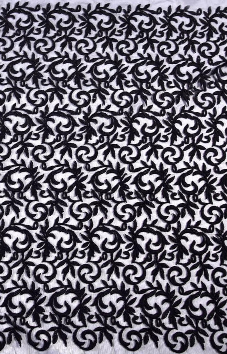 Ciekawa propozycja tiulu z haftem. Haft gruby, mięsisty. Tkanina idealna na sukienki wieczorowe lub bluzeczki. Szerokość haftu to ok 82 cm.