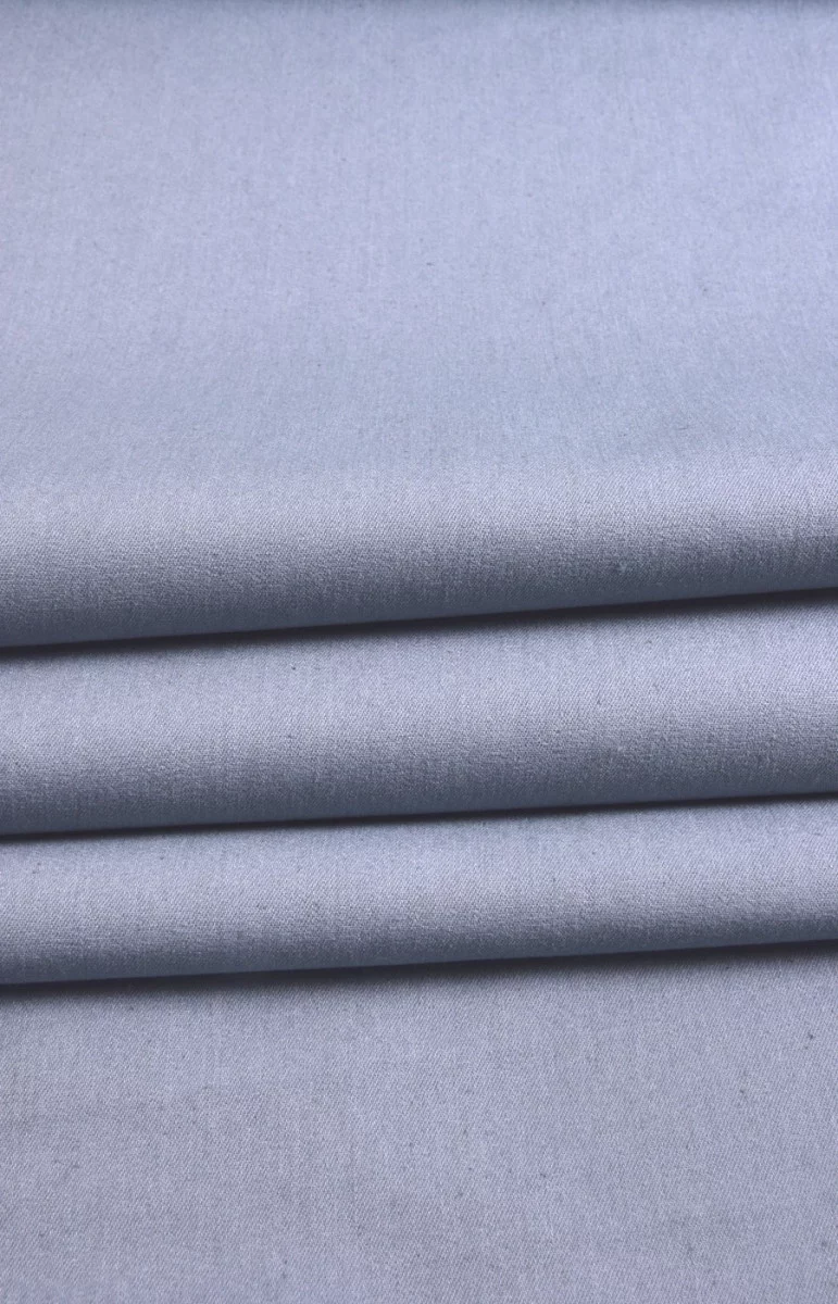 Bawełna jeansowa elastyczna w kolorze blado-niebieskim z przeznaczeniem na sukienki, spodnie, marynareczki. Tkanina nie spiera się.