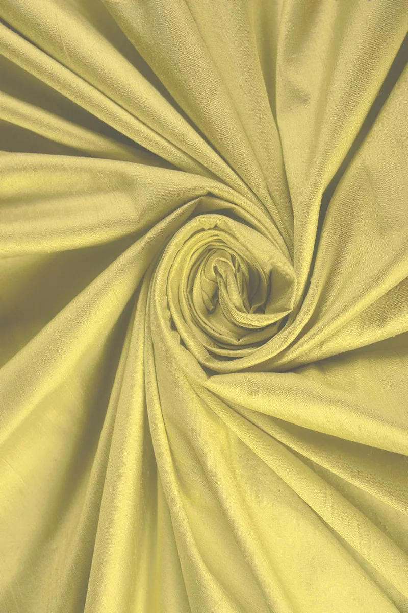 Jedwab typu szantung o gładkiej strukturze przypominającej taftę w kolorze limonkowej zieleni to luźno tkana tkanina, barwiona naturalnie. Posiada lekko sztywną , plastyczną strukturę . Nadaje się zarówno na ubrania jak i na dekorację wnętrz- zasłony, poduszki itp. Czyszczenie tylko chemiczne!