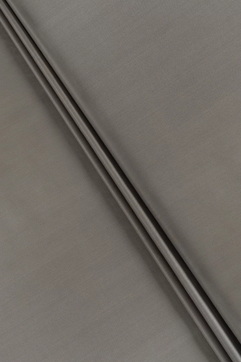 Włoska tkanina 100% jedwabna typu tafta o drobnym splocie żakardowym, tkanina w pięknym beżowo-szarym kolorze. Tafta z naturalnego jedwabiu to tkanina cienka ale sztywna z charakterystycznym dla tkanin jedwabnych delikatnym połyskiem. Idealna do uszycia sukienki, bluzki, koszuli, spódnicy.