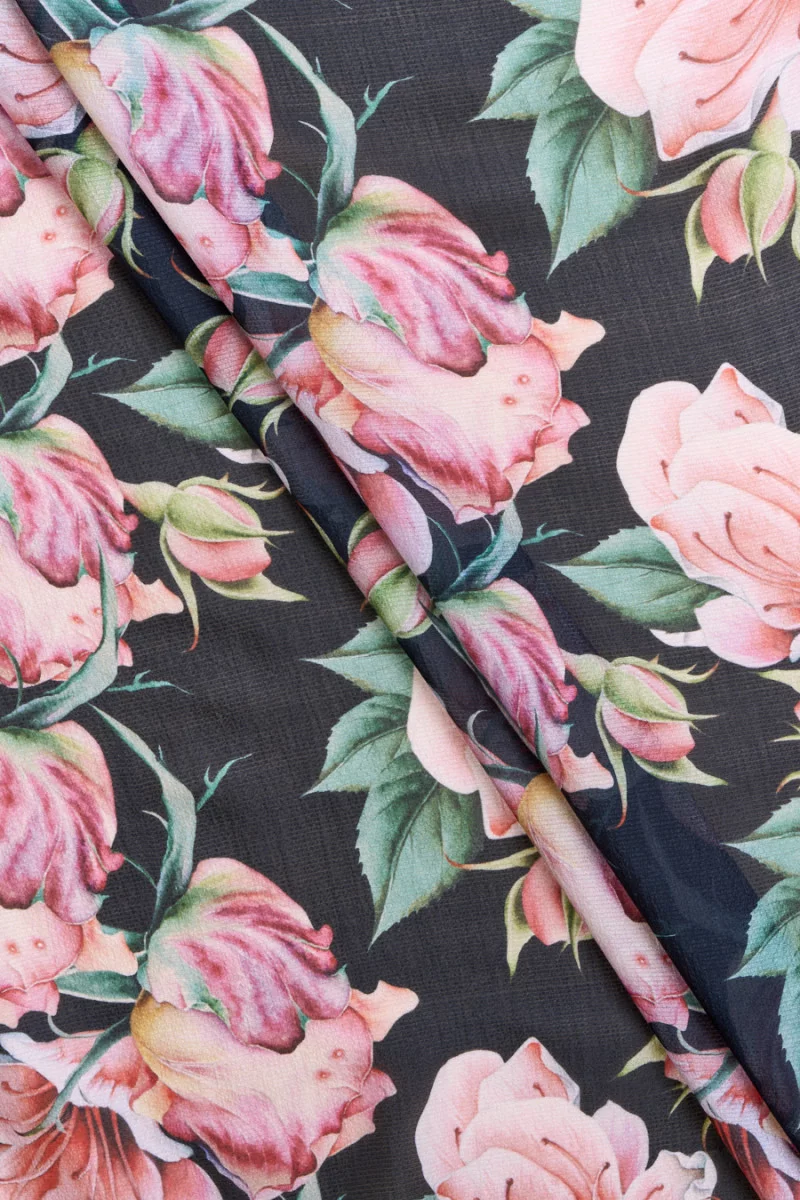 4. Szyfon jedwabny duże kwiaty KUPON 40cm