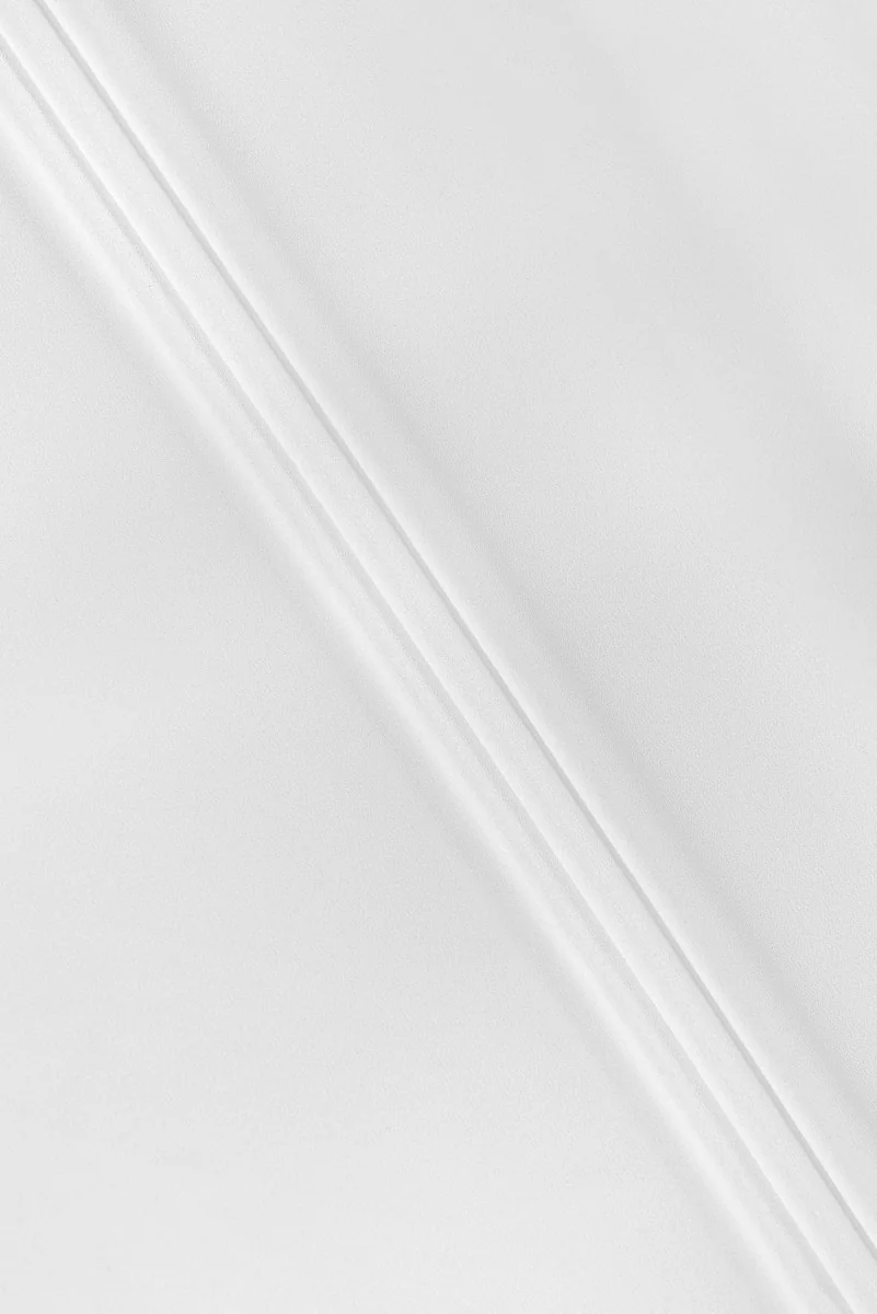 Włoska tkanina jedwabna z dodatkiem elastanu w kolorze białym. Tkanina o splocie żorżetowym, matowa o delikatnie ziarnistej strukturze. Materiał jest lekko elastyczny, cienki, troszkę transparentny, lekki i zwiewny. Idealna propozycja do uszycia eleganckiej sukienki, bluzki, koszuli i spódnicy. Znajdzie także zastosowanie w "modzie ślubnej".