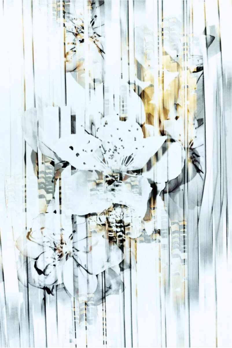 Włoska satyna jedwabna z dodatkiem elastanu z motywem delikatnych kwiatów oraz pasów na jasnym tle, wykonanym w kolorze śmietany, szarości oraz złotego beżu. Regularnie położone kwiaty mają wielkość 20 cm * 17 cm, a pasy rozmieszczone są co około 2 cm i dają wizualne wrażenie plisowania na materiale. Tkanina jest lejąca, elastyczna, kryjąca, miękka i ma szlachetny połysk. Subtelna propozycja, która fantastycznie sprawdzi się na długą, zwiewną spódnicę, sukienkę a także koszule i bluzkę.