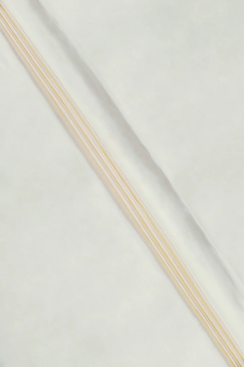 Włoska satyna przypominająca duchesse w kolorze écru. Materiał utkany z nitek acetatu, wełny oraz jedwabiu naturalnego. Pięknie błyszczący, nieelastyczny i sztywny. Idealnie sprawdzi się do uszycia eleganckiej sukni, spódnicy lub płaszcza.