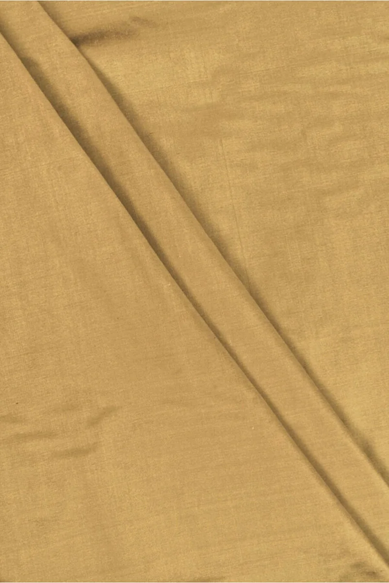 Włoska tkanina 100% jedwabna typu szantung w kolorze ciemnego beżu. Tkanina gładsza z delikatnymi zgrubieniami. Jest kryjąca, nieelastyczna, układa się raczej sztywno i jest bardzo elegancka. Doskonale sprawdzi się na wieczorowe suknie, spódnice, bluzki a także żakiety.