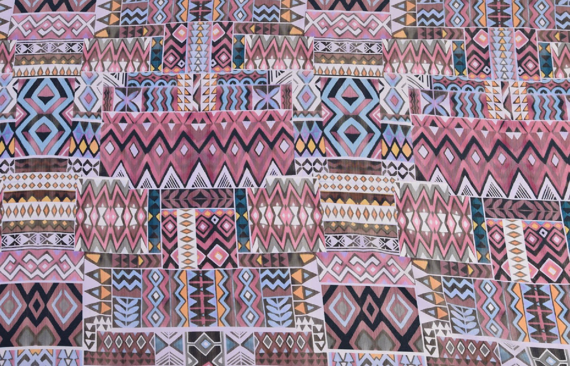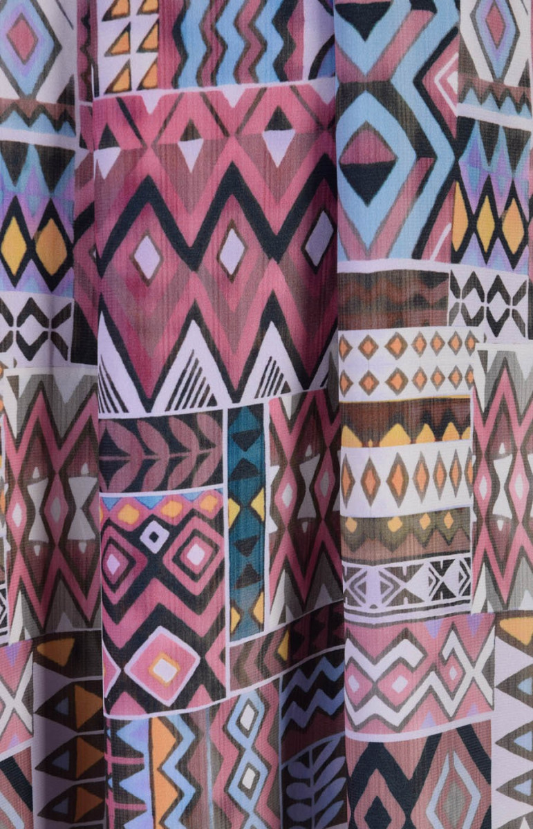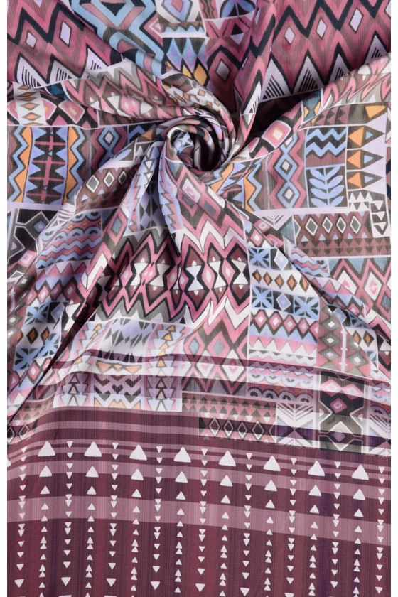 Mięsisty, wzorzysty jedwab naturalny. Print wykonany na lewej stronie dzięki czemu jest bardziej wyrazisty. Tkanina występuje w kuponie o wymiarach 120 cm * 140cm i jest nieelastyczna.