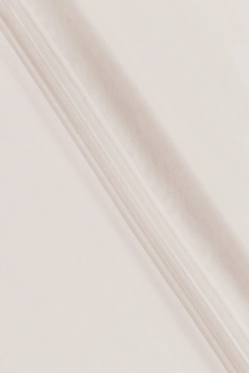 Włoska tkanina 100% jedwabna w kolorze śmietanowym. Materiał o splocie siateczki, bardzo lekki i zwiewny. Idealnie sprawdzi się do uszycia eleganckiej bluzki, sukienki lub szala.
