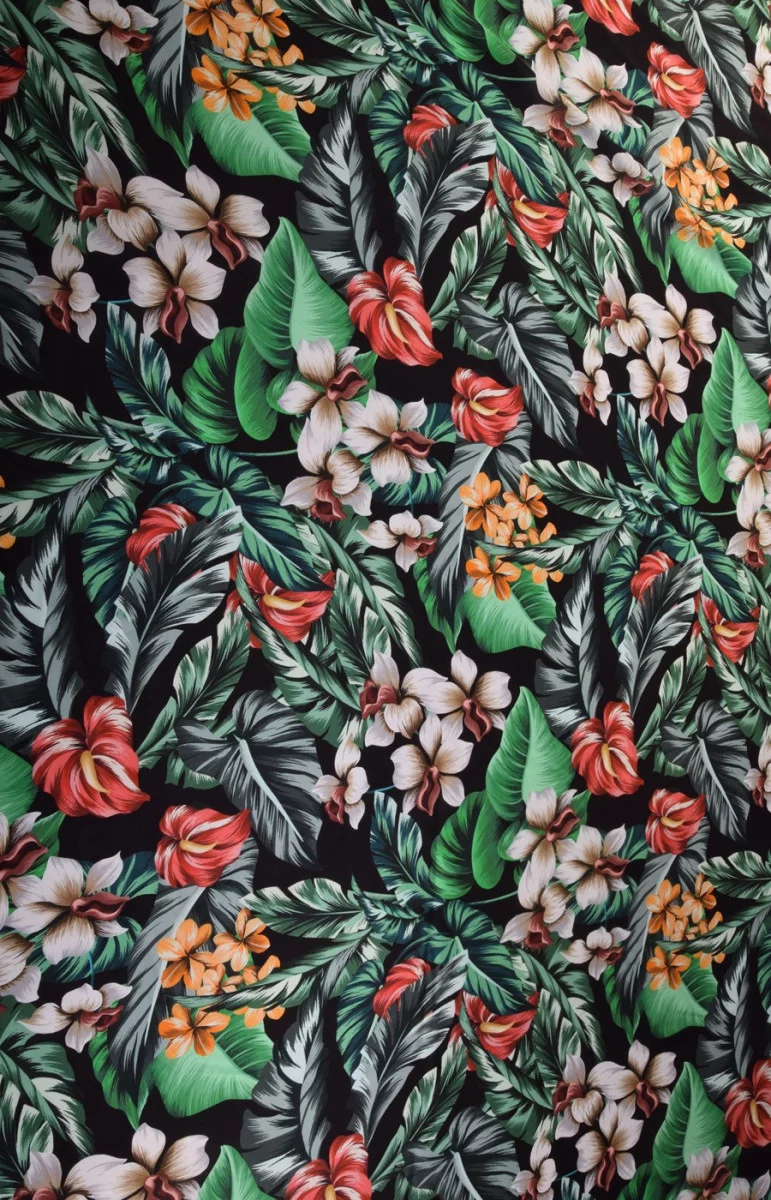 Krepa jedwabna z elastanem to tkanina delikatna, aksamitna w dotyku, pół transparentna. Print dżungli, można z niej wyczarować zwiewne sukienki, delikatne bluzeczki, pareo. Polecamy zastosować podszewkę.