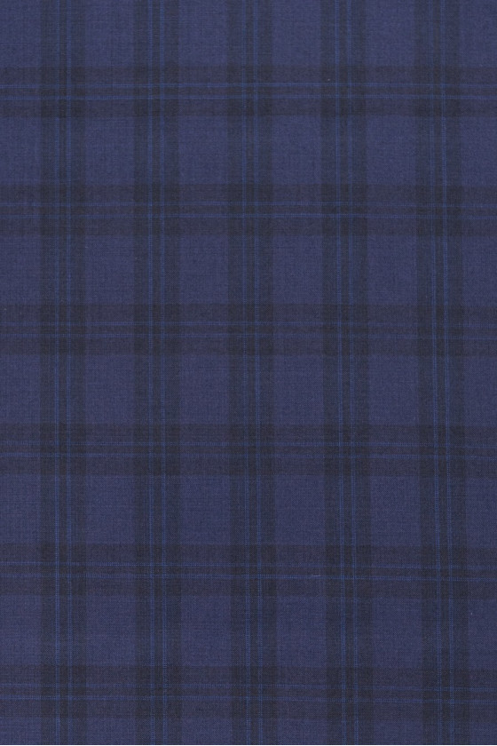 Wełna ciemno granatowa w czarną kratkę, skręt 120. Tkanina bardzo dobrej jakości o gramaturze idealnej na okres wiosna-lato-jesień.