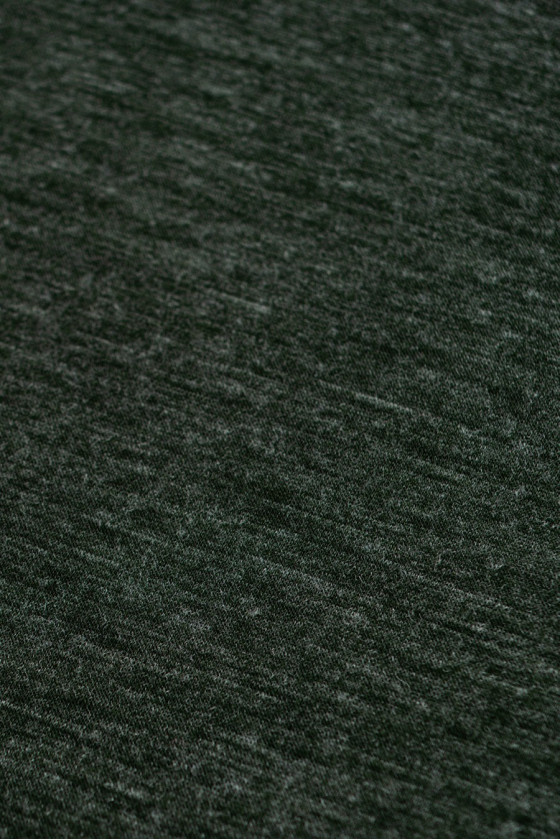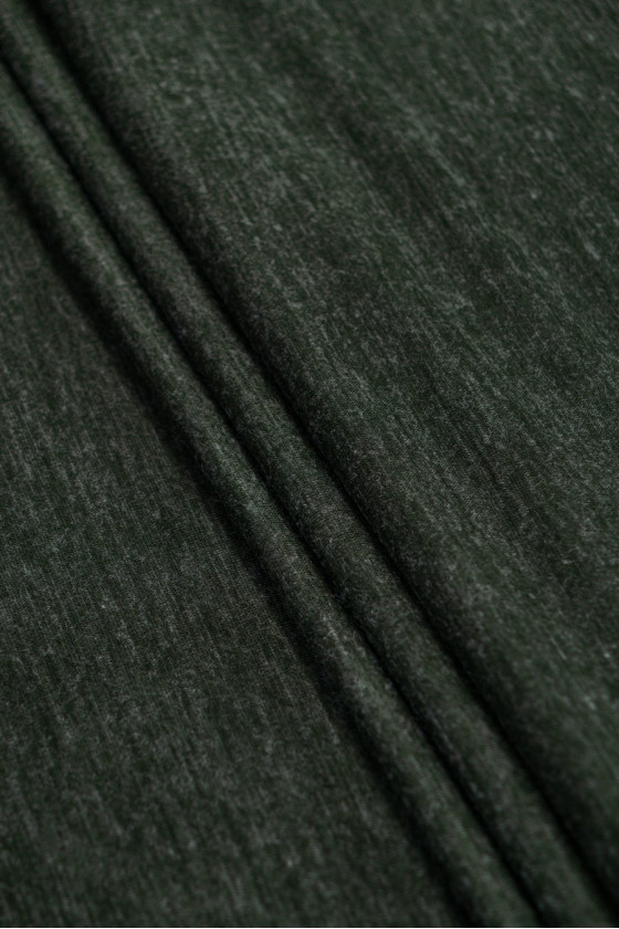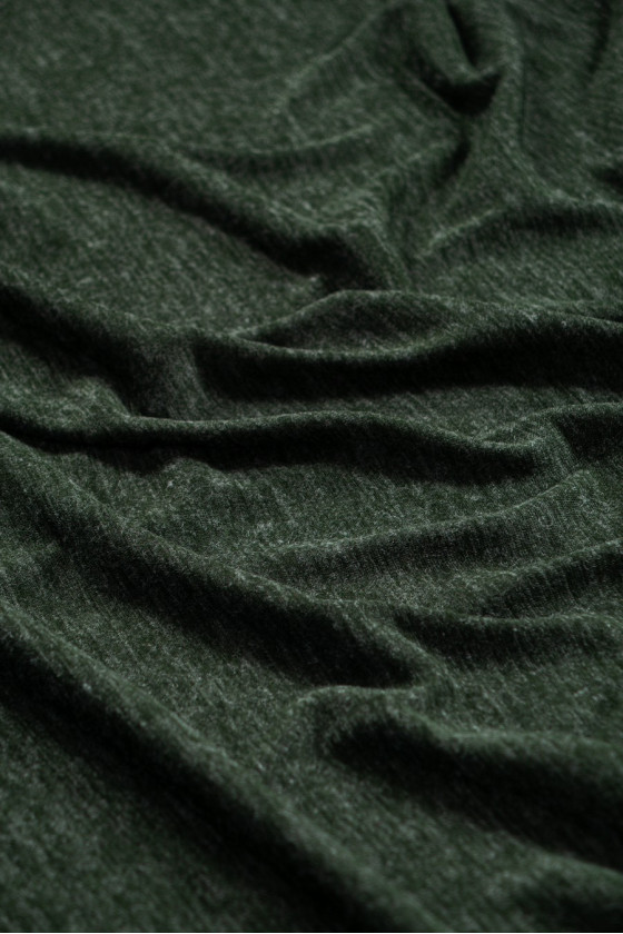 Włoska dzianina swetrowa w kolorze ciemnej zieleni - melanż, utkana z wełny naturalnej z domieszką akrylu. Cienka, transparentna, przyjemna w dotyku, idealna na uszycie sweterka, bluzki.