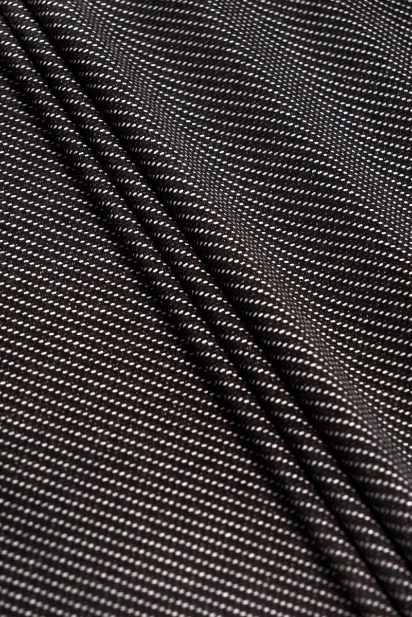 Włoska tkanina kostiumowa w skośny prążek w kolorze brązu z wplecioną nitką w kolorze ecru. Utkana z wełny naturalnej z domieszką kaszmiru.