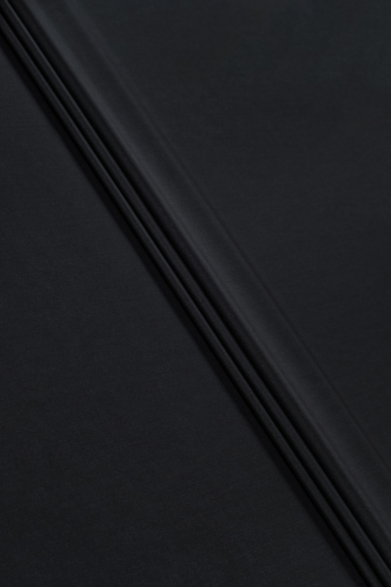Włoska wełna kostiumowa w kolorze grafitowym z ciekawym, dyskretnym połyskiem przypominającym drobny brokat. Tkanina miękka, o klasycznym splocie, nieelastyczna.