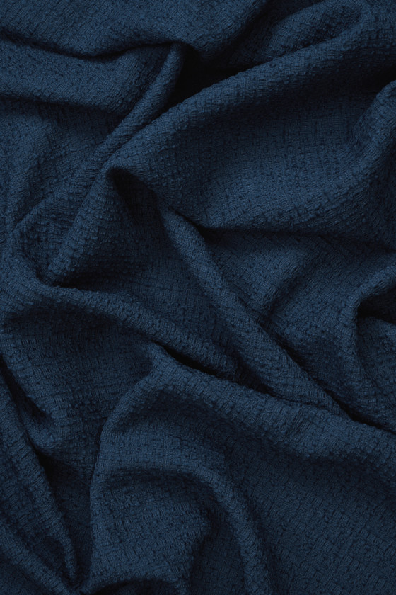 Włoska wełna typu chanel o splocie delikatnego boucle w kolorze niebieskim- jeansowym. Tkanina najwyższej jakości , pochodząca z jednej z najbardziej renomowanej fabryki we Włoszech . Dostępne są także inne kolory !